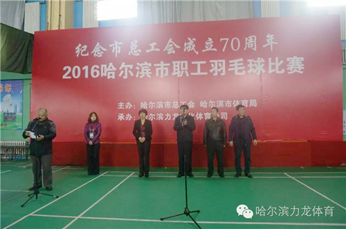 為隆重紀念市總工會成立70周年,由市總工會、市體育局主辦,哈爾濱力龍文化體育用品經(jīng)銷有限公司承辦的2016年哈爾濱市職工羽毛球比賽于2016年10月19日在力龍羽毛球館拉開帷幕,來自全市50個代表隊、近700名運動員即將進行三天的角逐。出席開幕式的領導有市人大常委會副主任、市總工會主席 黃玉生,市體育局副巡視員邵韻聲,省羽毛球協(xié)會執(zhí)行秘書長汪玉杰。市體育局副巡視員邵韻聲同志致辭。由運動員代表及裁判員代表宣誓,***后由市人大常委會副主任、市總工會主席黃玉生及省羽毛球協(xié)會執(zhí)行秘書長汪玉杰為比賽開球并宣布比賽正式開始。